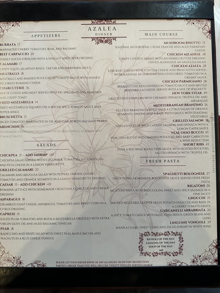 Overall, Azalea impresses with its delicious food, personable service, and inviting atmosphere, making it a must-visit for Italian cuisine enthusiasts in the city.